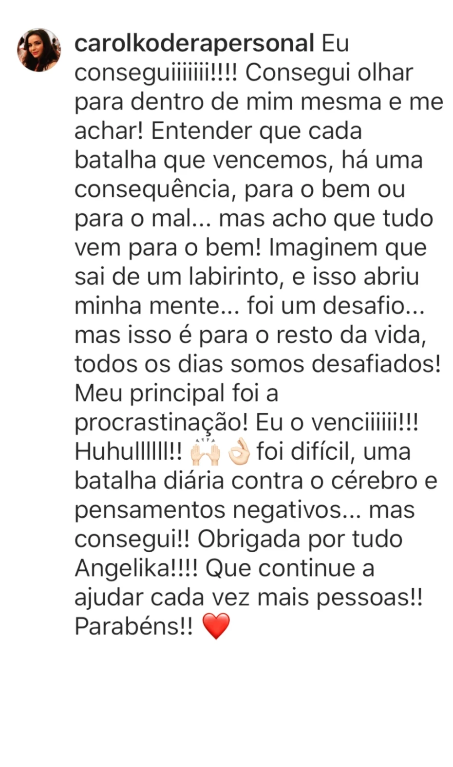 Suporte direto com Angelika durante toda sua jornada de 90 dias.